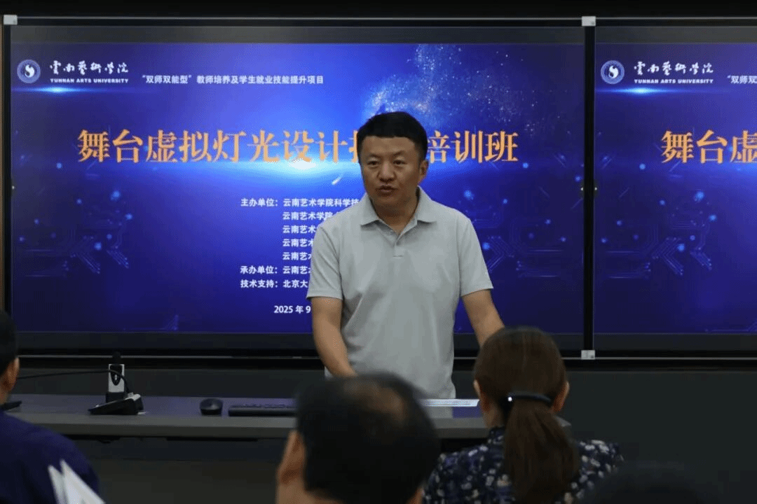 2025年9月6日,学院舞台视觉虚拟仿真青年骨干教师培训及学生就业技能提升项目——舞台虚拟灯光设计技能培训班开班仪式在welcome欧洲杯顺利举行。本次培训是深入贯彻落实国家文化数字化战略、推动艺术与科技深度融合、加强高素质应用型艺术人才培养的重要举措。