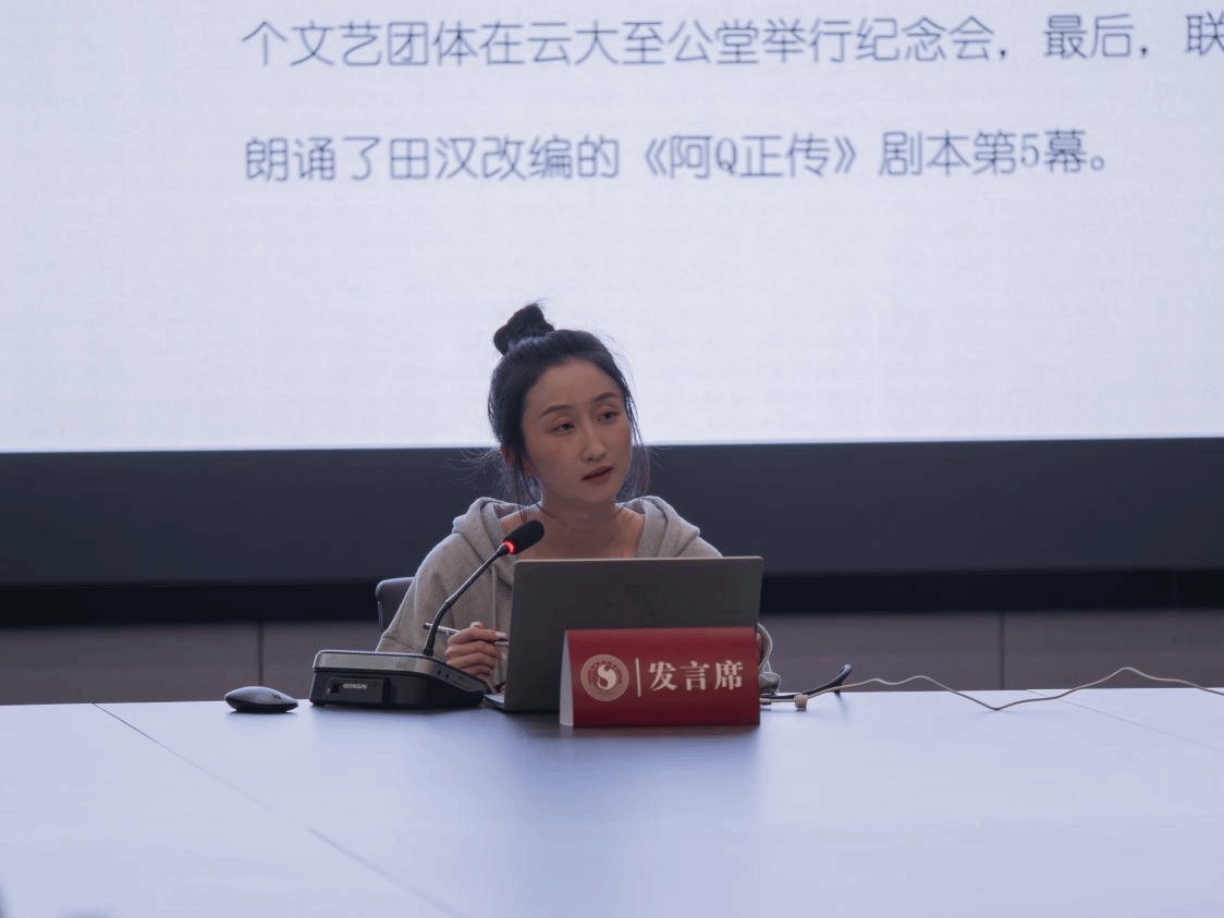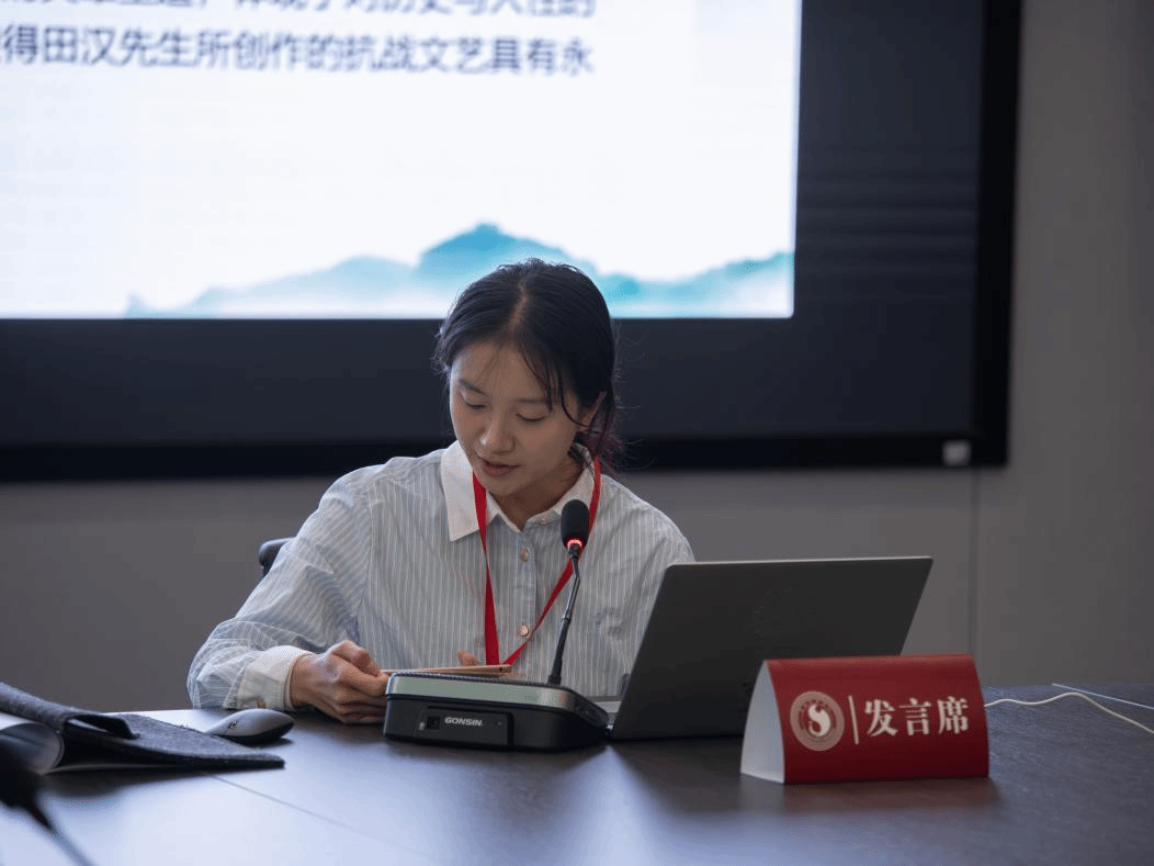 学院史论方向硕士研究生刘漫君以《关于田汉的大众语实验——以<阿Q正传>为例》为题,分析田汉在1937年改编五幕剧《阿Q正传》中的语言实验实践。研究指出,田汉早在南国社时期便尝试在舞台中使用方言,大众语试验贯穿其创作实践,并在抗战时期西南地区的演剧活动中得到延续与发展,不仅体现了戏剧创作与时代背景的紧密关联,也展现了田汉“在野”的戏剧理念和对民族话剧大众化的探索,对当代戏剧创作仍具启示意义。