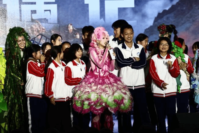 演出现场反响热烈,互动环节开启,气氛瞬间达到高潮,初、高中部的同学们争先恐后登台分享。他们不仅表达了对雪莲、绿绒蒿等“高山精灵”的由衷喜爱,更围绕“个体与家园”、“坚韧与奉献”等剧目内核,结合自身成长,畅谈观剧感受。观看演出的学生们纷纷表示被"雪兔子"在风雪中守护家园的勇敢所打动,也从一生只开一次花的"塔黄"身上,读懂了生命的厚重与坚持。这些高山精灵的故事化作孩子们心灵深处的回响,生态保护的意识也在情感共鸣中悄然生长。在这场关于勇气与生命的对话中,美育的种子已在中学生们心中生根发芽。