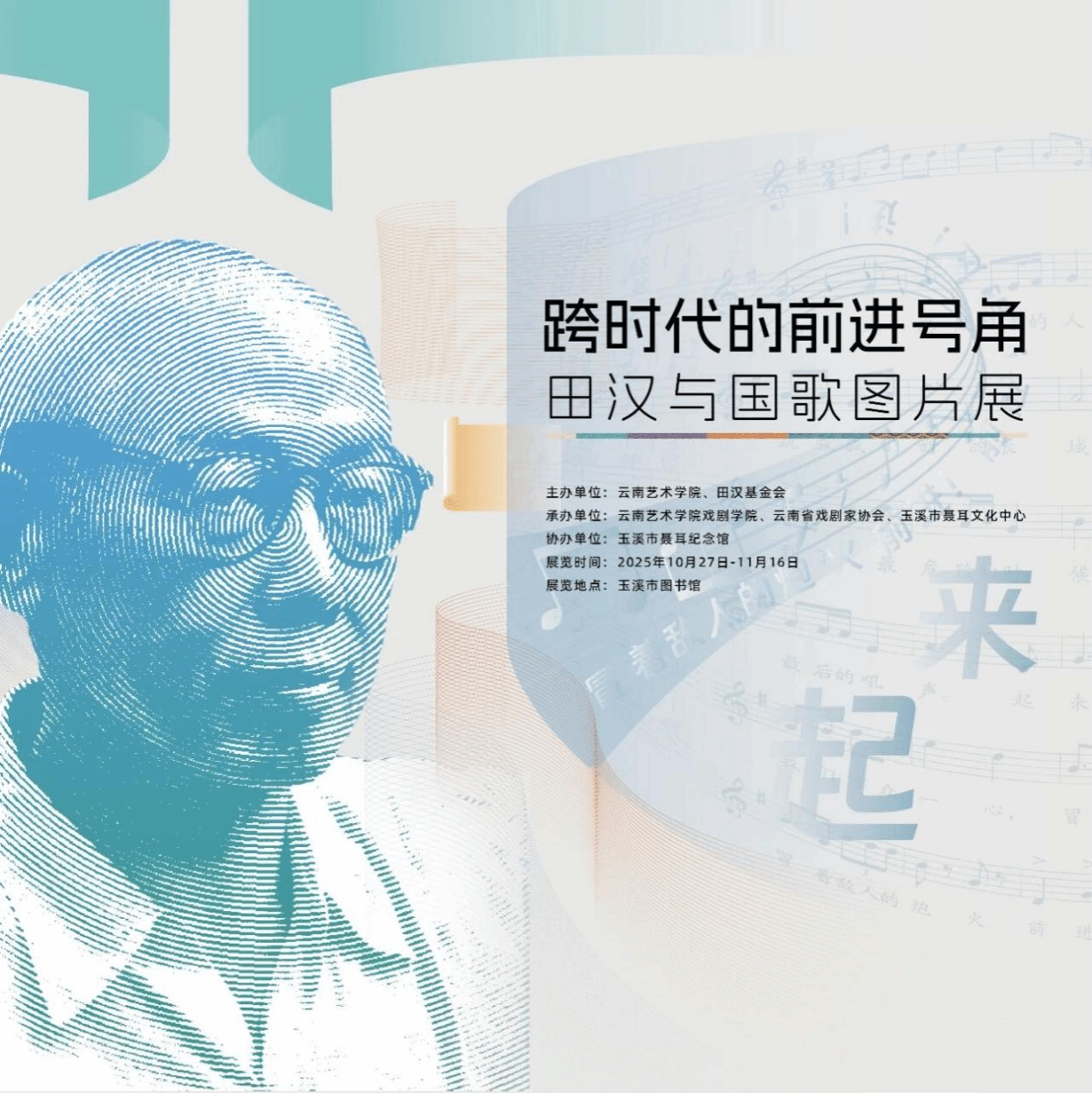 本次展览来到田汉与聂耳精神的交汇之地——玉溪,展览汇集了大量珍贵图片、文献与艺术成果,呈现了田汉先生在西南地区特别是云南的艺术实践、教育贡献与思想影响的历程,与国歌背后的动人故事。